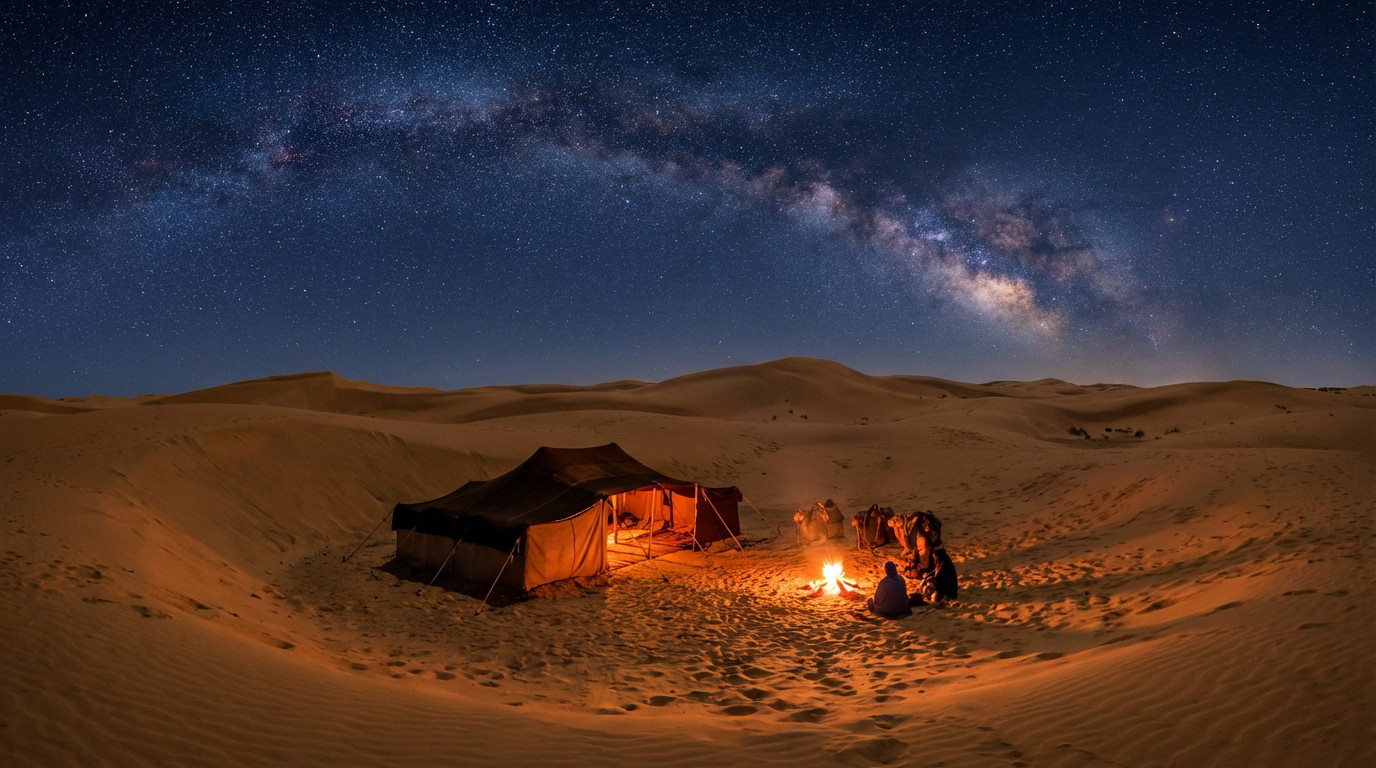 Soudain, le générateur se coupe. L’obscurité totale reprend ses droits sur les dunes. Le ciel se dévoile avec une netteté brutale. La Voie Lactée traverse l’horizon.